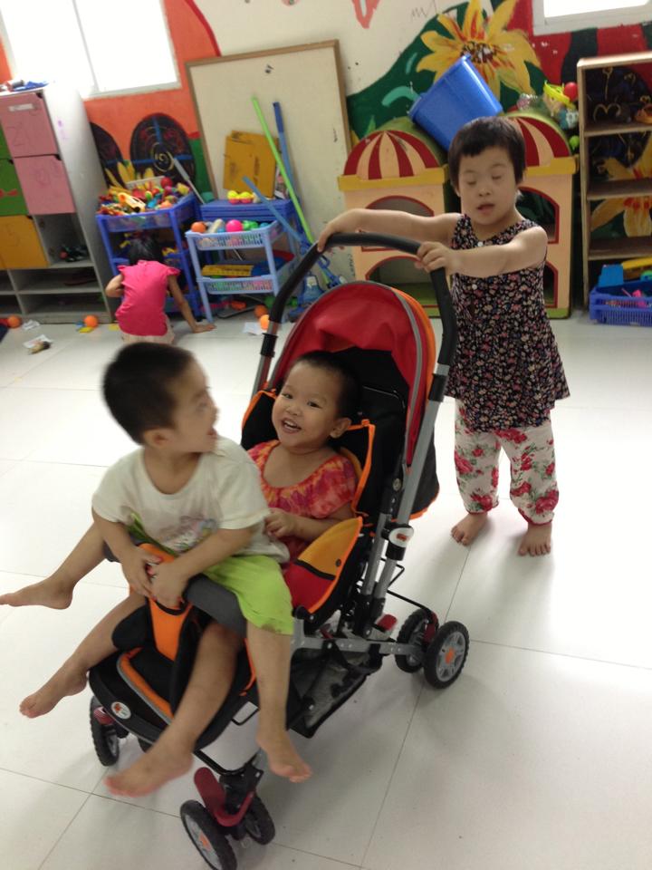 On the opposite side of the kindergarten class, there is the baby room and the disabled room. In 2013 we were really lucky and had so many volunteers, that we could support both these rooms as well. We spent our time in both rooms, by playing with the babies, taking them out to the fresh air and entertain them by playing with their baby toys. These children are from a few weeks until one year of age old, and were either found in front of the gate or brought to the orphanage by relatives, who couldn’t, due to whatever reasons, obviously mostly money, care for them anymore. This room needs all the support possible. Only three nannies care for around twenty little children. It’s impossible for them to be there for all of them at the same time, so that they need help by feeding, washing, changing diapers and playing with them. All these children were so easy to handle and were so happy to get out of their beds and being entertained in whatever way. Little humans search for attention and love. We experienced this in that room again and even stronger. Left behind children needs attention and the help of grownups to not fall in a depressed mode. Working in that room with these children was frankly more difficult for us, because these little children weren’t able to show their feelings by expressing words. Smiling or crying was their only way to communicate with us. Every smile shows you are on the right way, but doesn’t help our heart break when we had to leave in the afternoon or at the end of our limited time. That’s the main problem for us.