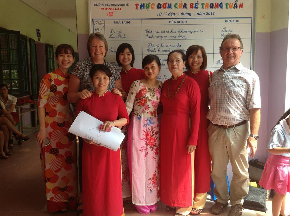 Teaching was a lot of fun. Controlling a class of up to 40 students and trying to teach them English is an experience I don’t want to miss. Despite the fact that Vietnamese schools are a bit unorganized and not well structured, teaching was totally up to us as a teacher. Being a native speaker from United Kingdom and a fluent English speaking student from Germany helped to find out where the strength and the weaknesses of the students were. We were totally flexible in the way we taught. We could just use the grammar books, do vocabulary training, write and read out stories and dialogues, or play games in order to combine the fun and the learning. Especially by having fun, the students learned a lot and recalled a lot of their knowledge in an easy way. It is a challenge to make the students speak and read out loud. Although their grammar knowledge is really good, they are too shy to speak in front of a class or to read out loud. That leads to the point that they don’t really use their knowledge and cannot show their skills. We tried to solve these problems during singing famous songs and writing dialogues or speaking about e.g. their weekends. The staff at the school was very helpful and supporting in everything we did. In the end they said they learned a lot from us and are happy we supported them.
